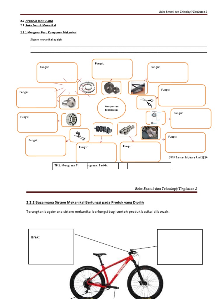 PENERANGAN BERDASARKAN SUMBER BUKU TEKS REKA BENTUK DAN TEKNOLOGI TINGKATAN 2TERIMA KASIHMohd Zukhairi bin Abdul RahmanMohd Ismail bin Abdul. Dalam kerangka basikal elektrik tayar pedal brek rantai dan 25 bahagian lain komponen asasnya sangat diperlukan.